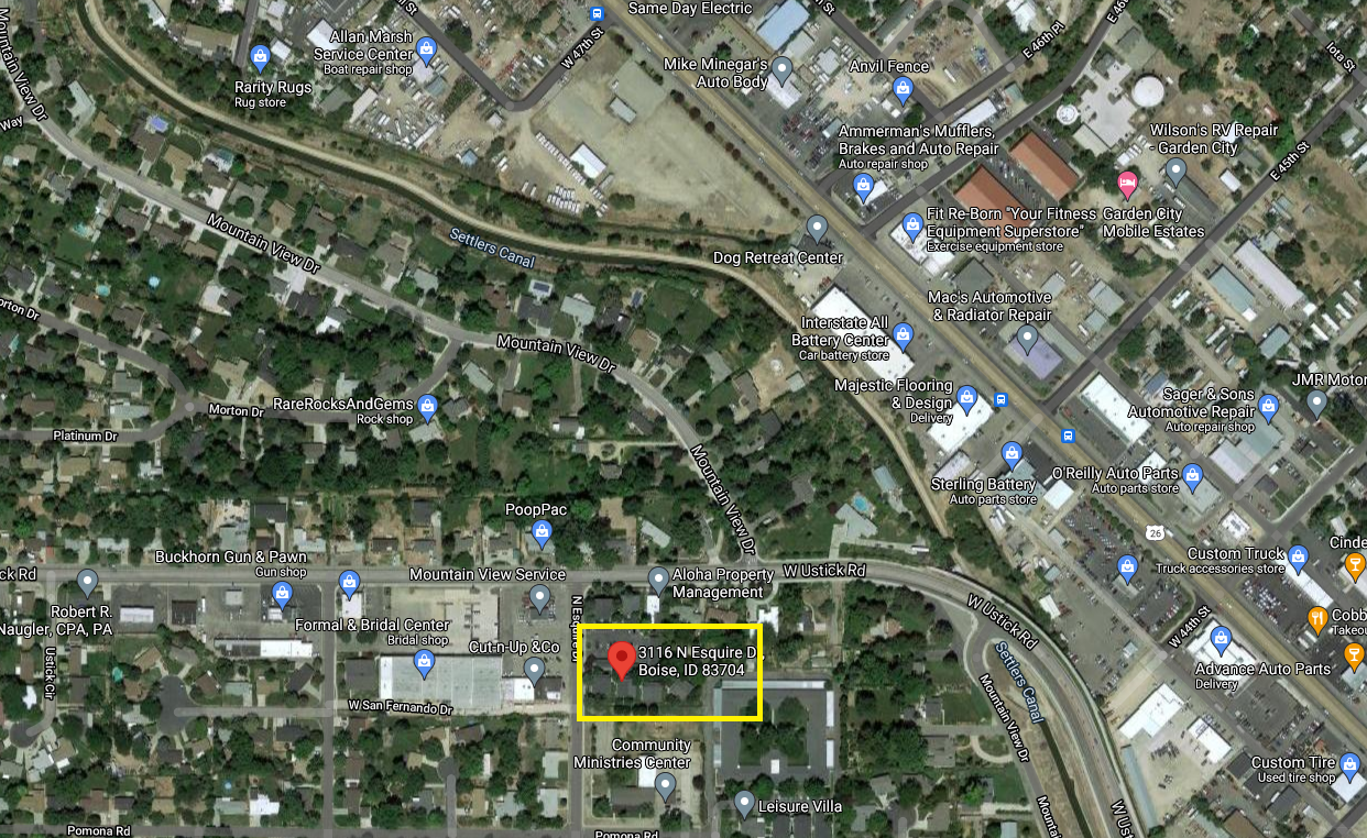 - From Fairview, N on Cole, E on Ustick, corner of Esquire and Ustick
