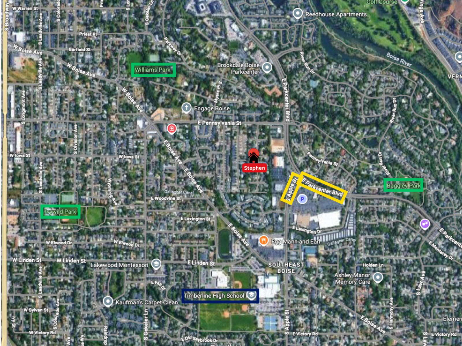 - From Park Center, W on Pennsylvania, S on Stephen